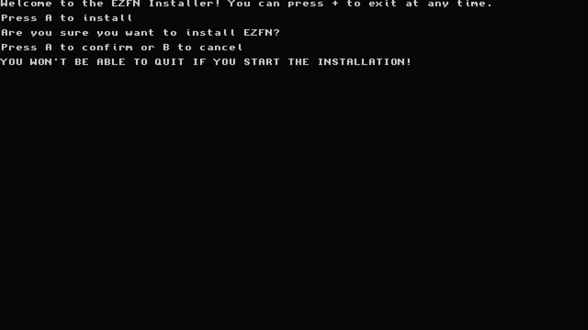 Now open it, you will be greeted by the installer, press A to proceed with the installation, then press A again to suppress the warning.